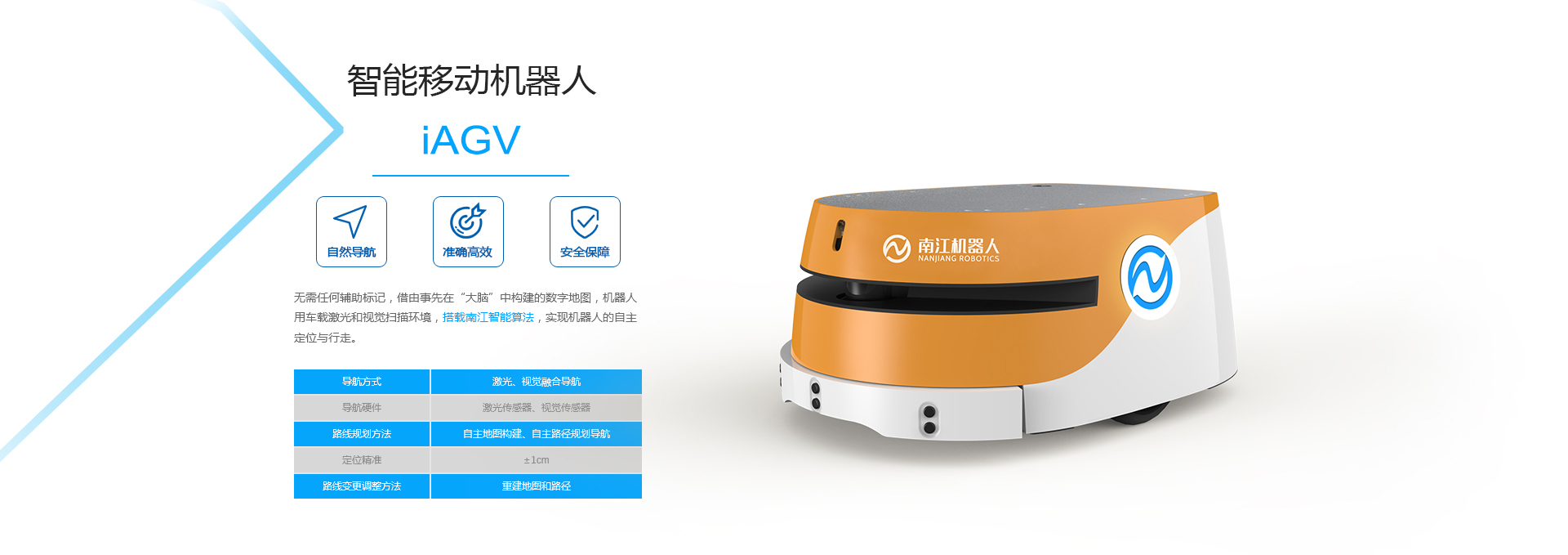 杭州南江机器人股份有限公司(简称“南江机器人”)成立于2014年9月,以“机器为人,智能世界”为使命,与浙江大学紧密合作,成立了“浙江大学-南江智能机器人研究中心”,挖掘浙江大学在智能机器人领域国际领先的研究成果和优秀人才,立志发展成为国际一流的智能机器人研发和服务企业。