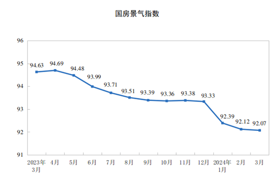 3月份,房地产开发景气指数(简称“国房景气指数”)为92.07。