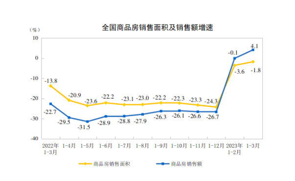 表1 2023年1-3月份全国房地产开发和销售情况