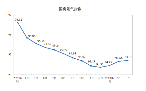 3月份,房地产开发景气指数(简称“国房景气指数”)为94.71。