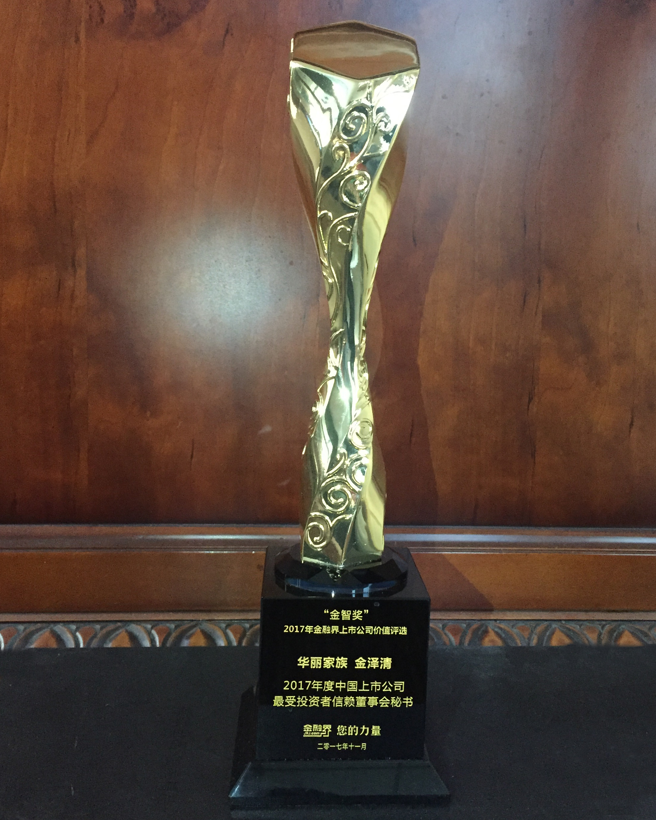 华丽家族荣获2017年度“金智奖”上市公司价值评选双项大奖